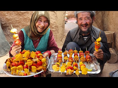 As we watch the couple expertly prepare the chicken kebabs, we're struck by the simplicity and elegance of their cooking technique. The combination of fresh ingredients, carefully selected spices, and a dash of love is a testament to the beauty of traditional cooking. The couple's hands move with a practiced ease, as they skillfully alternate between marinating, threading, and grilling the kebabs.